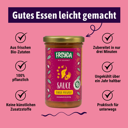 The Froyda Tikka Masala Sauce will delight your taste buds and stomach alike!